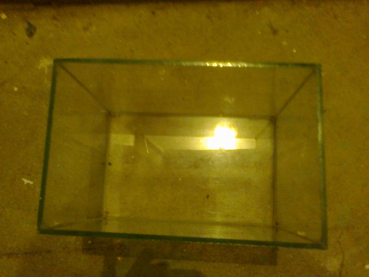Kis méretű terrárium. A sarkain tört le az üveg. Az illesztéseknél a ragasztó nem engedte el és az üveg sincs sehol megrepedve.